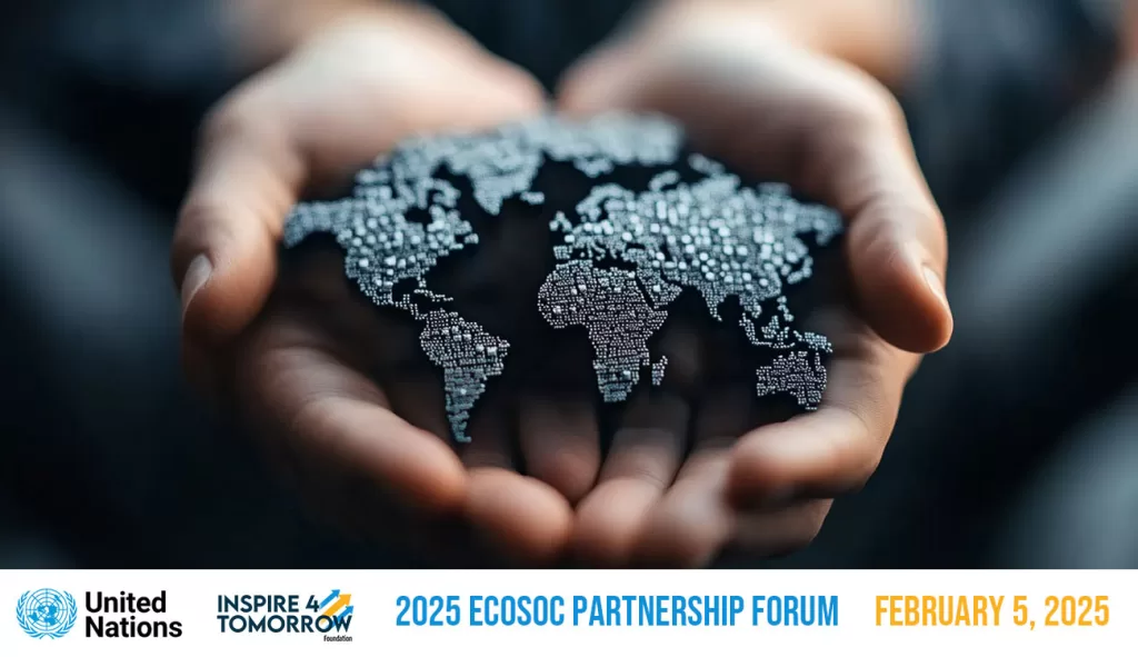 Join us at the “Inspire 4 Tomorrow” (I4T) side event, part of the 2025 ECOSOC Partnership Forum, as we unite global leaders, organizations, and communities to address the pressing challenges of our time. This event highlights innovative partnerships designed to accelerate commitments towards inclusive and sustainable development. With a focus on advancing the 2030 Agenda, the I4T initiative fosters collaboration across diverse sectors, prioritizing equality, innovation, and actionable solutions for a better future.